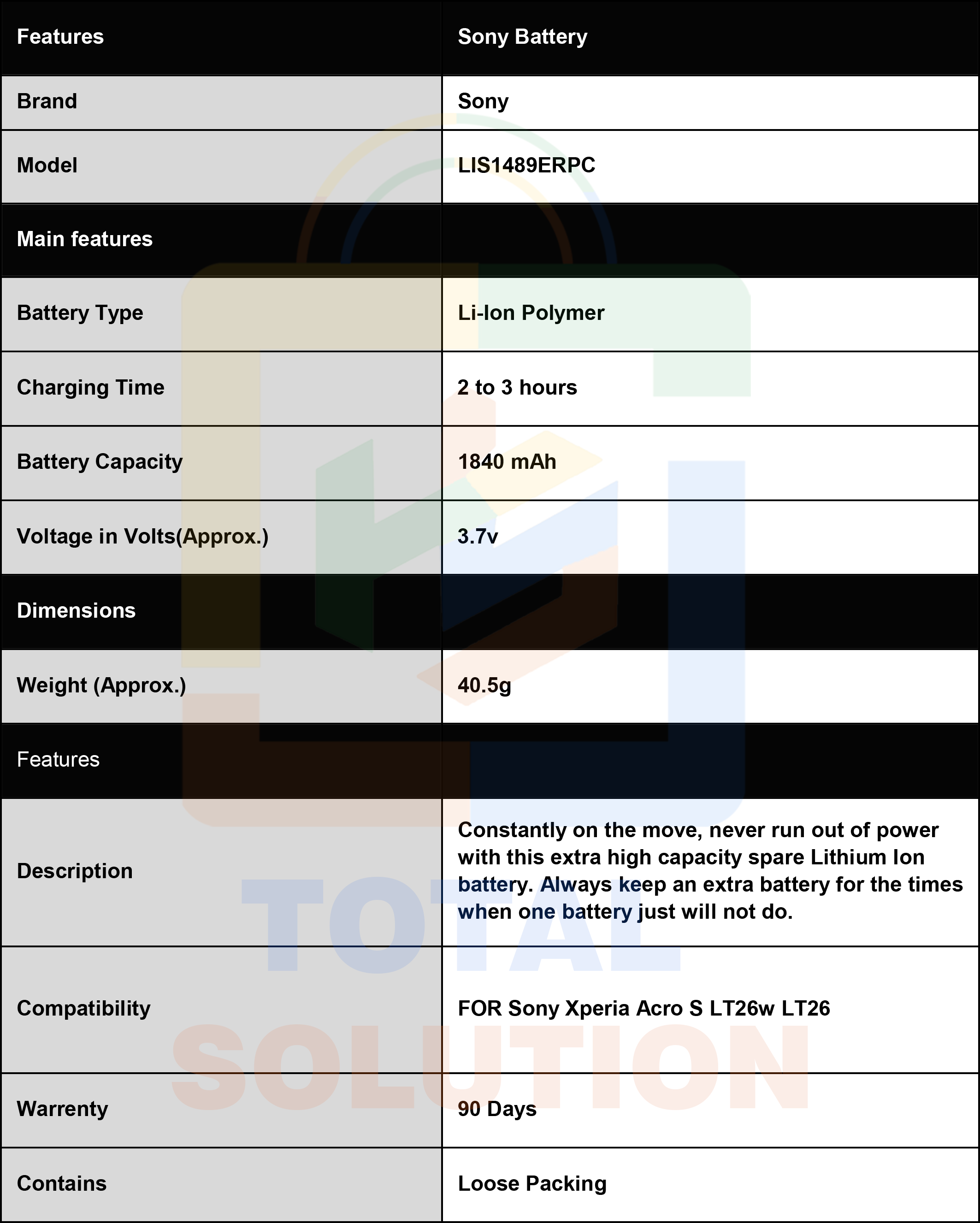100% ORIGINAL BATTERY FOR Sony Xperia Acro S LT26w LT26 LIS1489ERPC 1840mAh