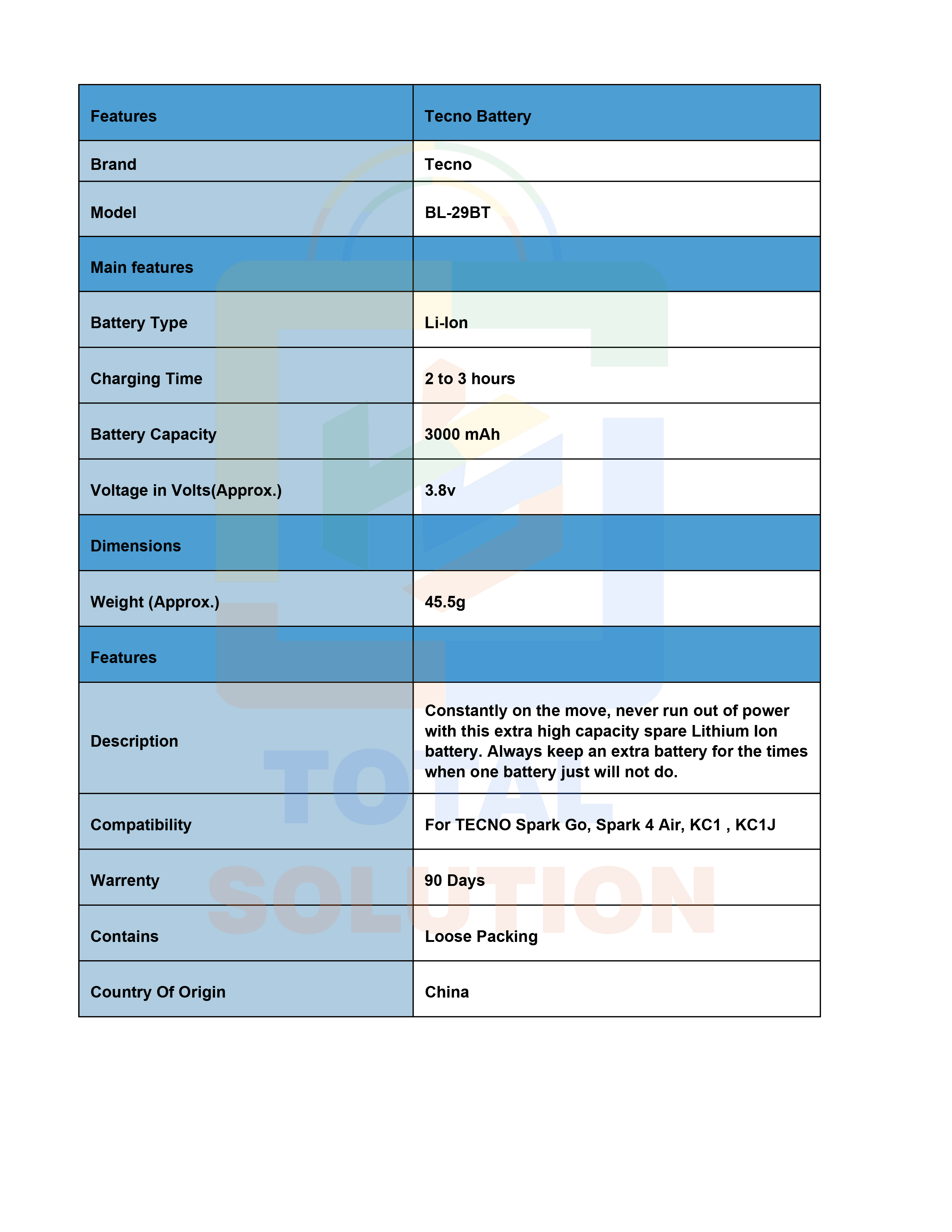 100 % BRAND NEW Original Tecno Pouvoir 3 Air LC6 Battery BL-49ET BL49ET - 5000mAh