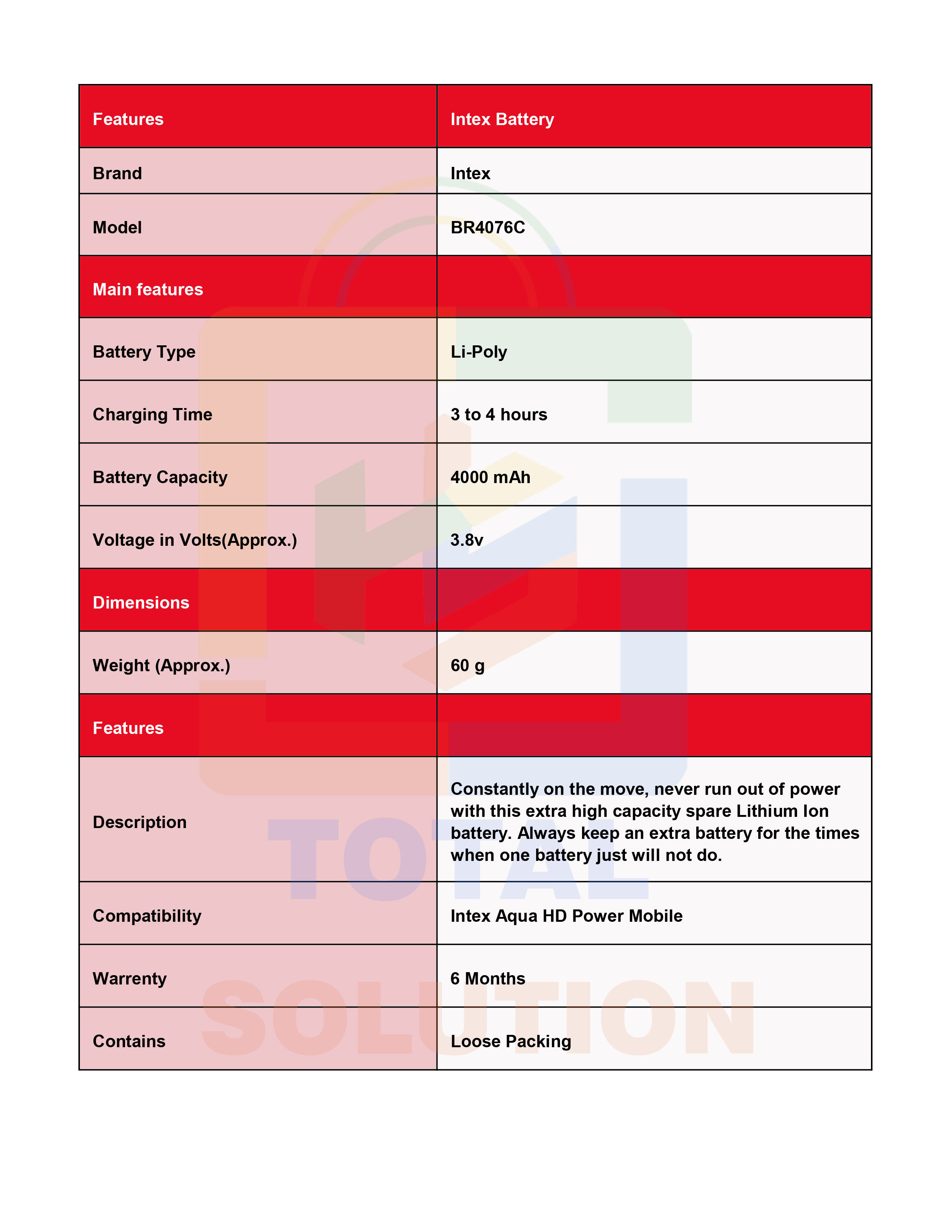 100%Original BR4076C Battery For Intex Aqua HD Power Mobile With 4000mAh