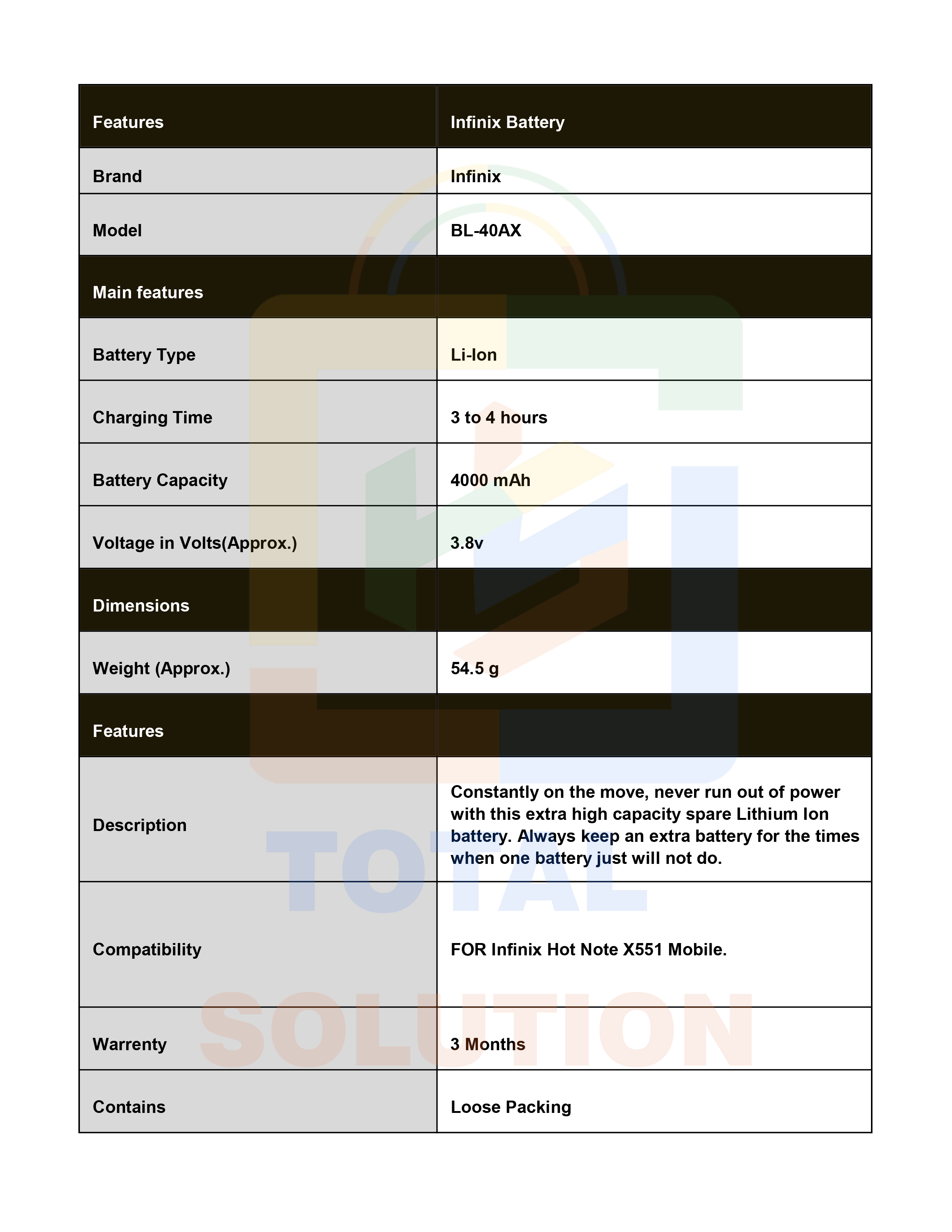 100%Original Infinix BL-40AX Battery for Infinix Hot Note X551 Mobile
