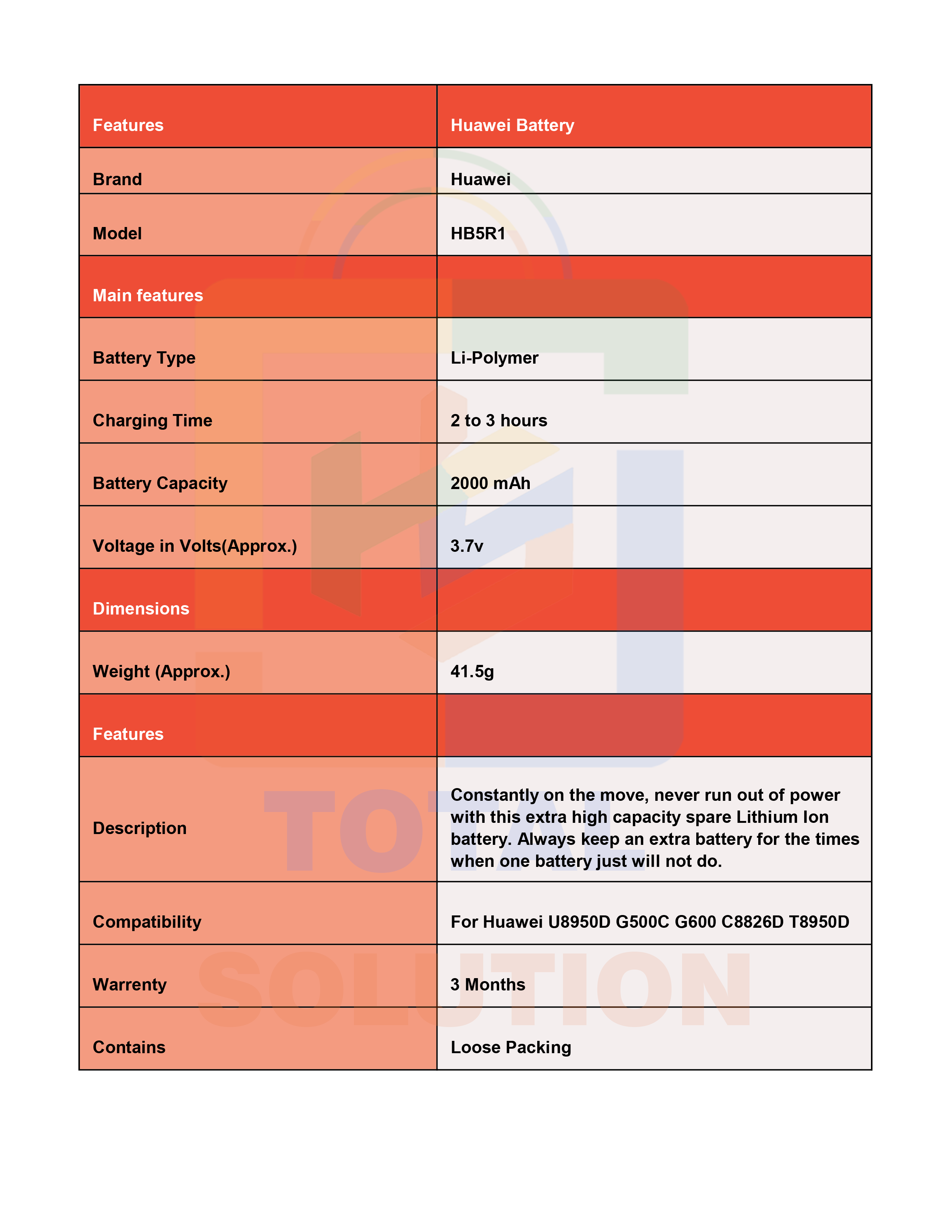 Huawei HB5R1 Battery For Huawei U8950D G500C G600 C8826D T8950D With 2000mAh