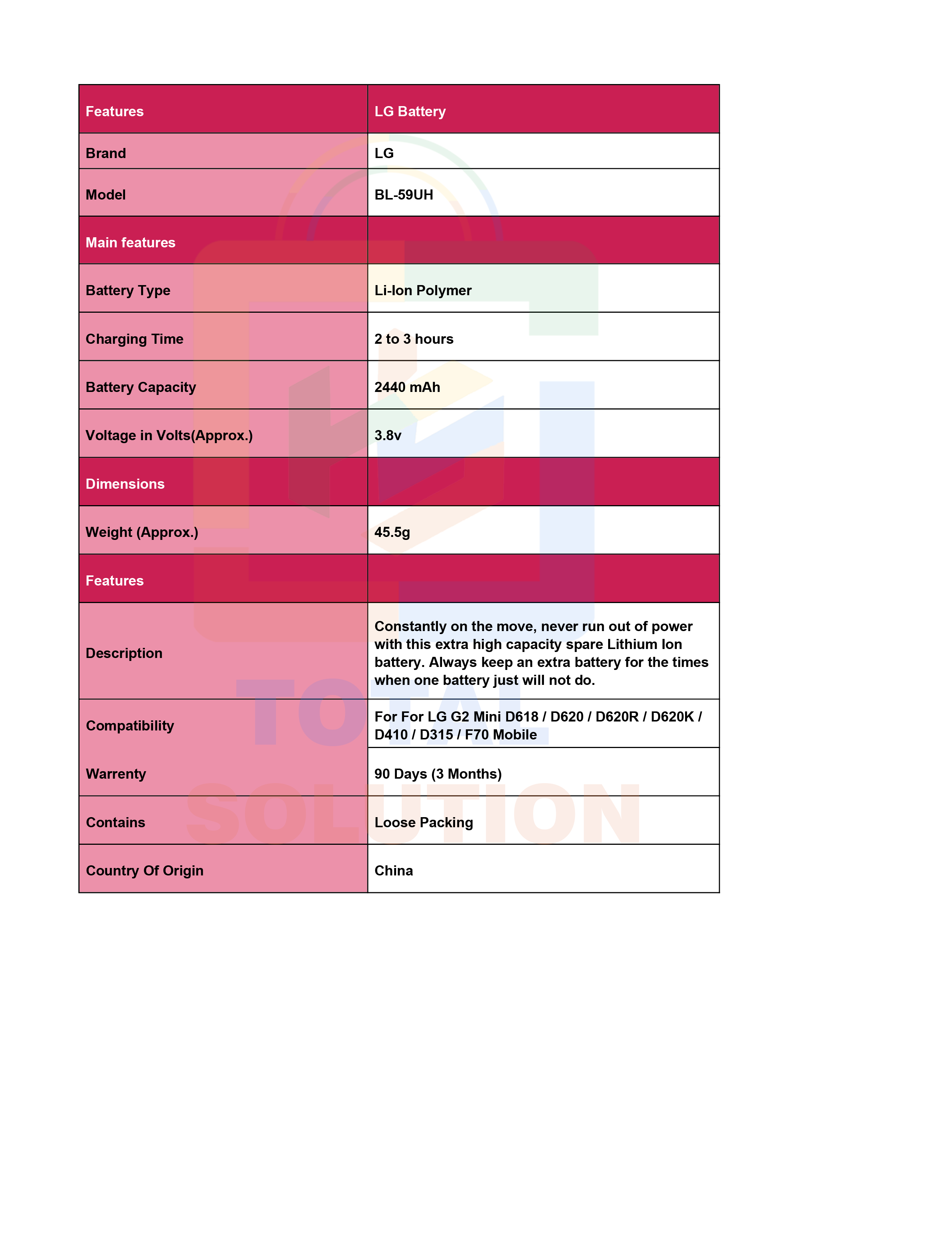 NEW LG BL-52UH Battery - 2100mAh LG battery LG mobile battery
