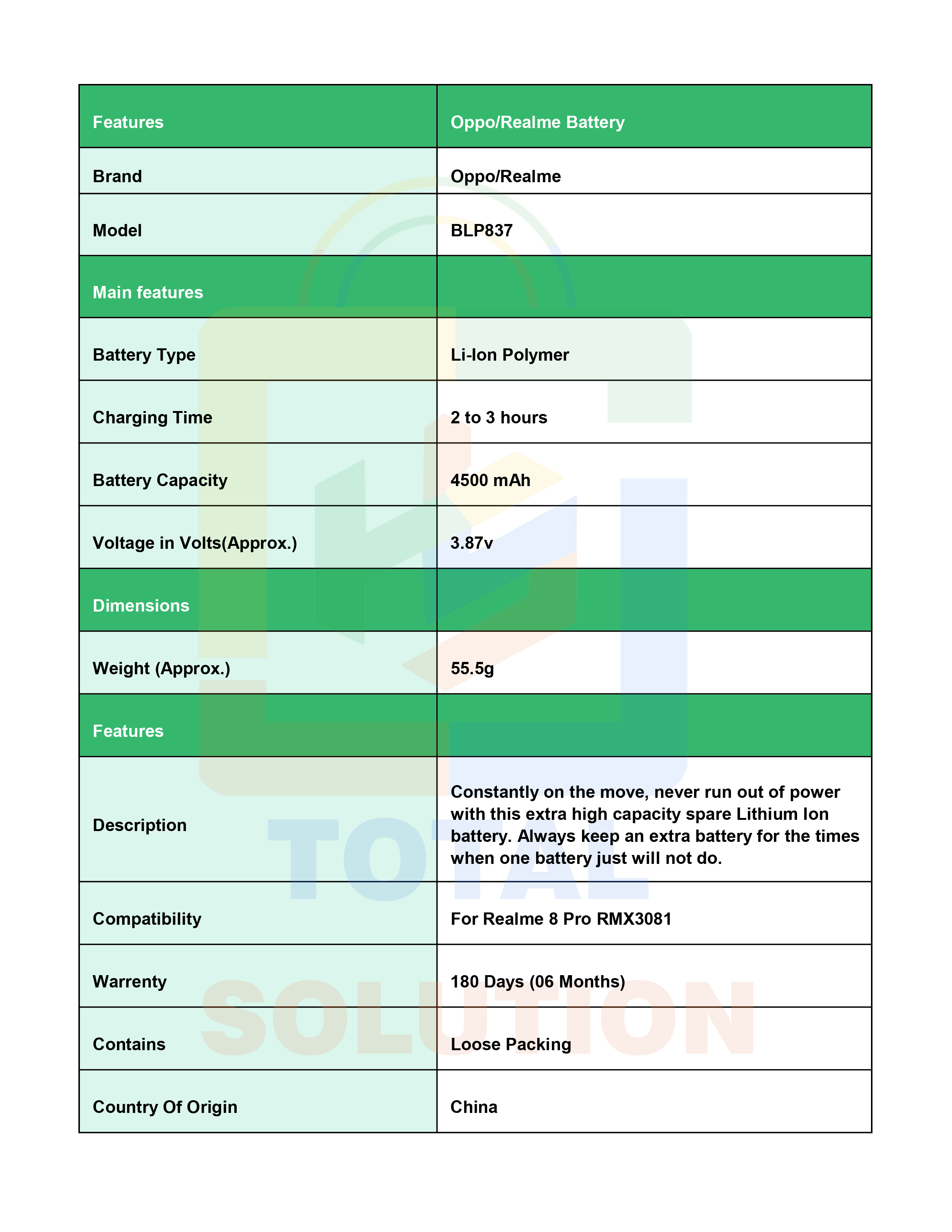 New Oppo BLP837 Battery For Realme 8 Pro RMX3081 Mobile - 4500mAh
