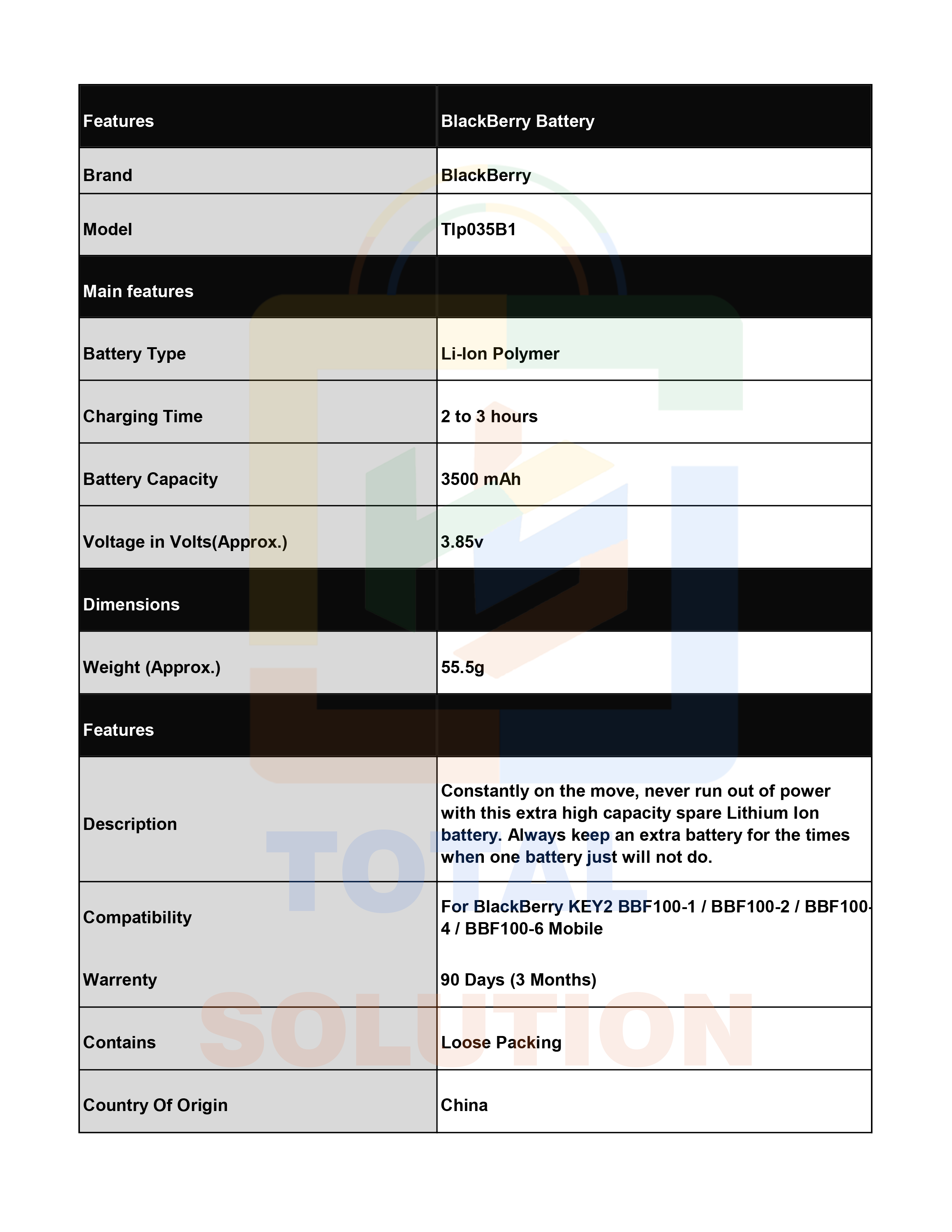 NEW Original BlackBerry Key2 Battery Tlp035B1 - 3500mAh