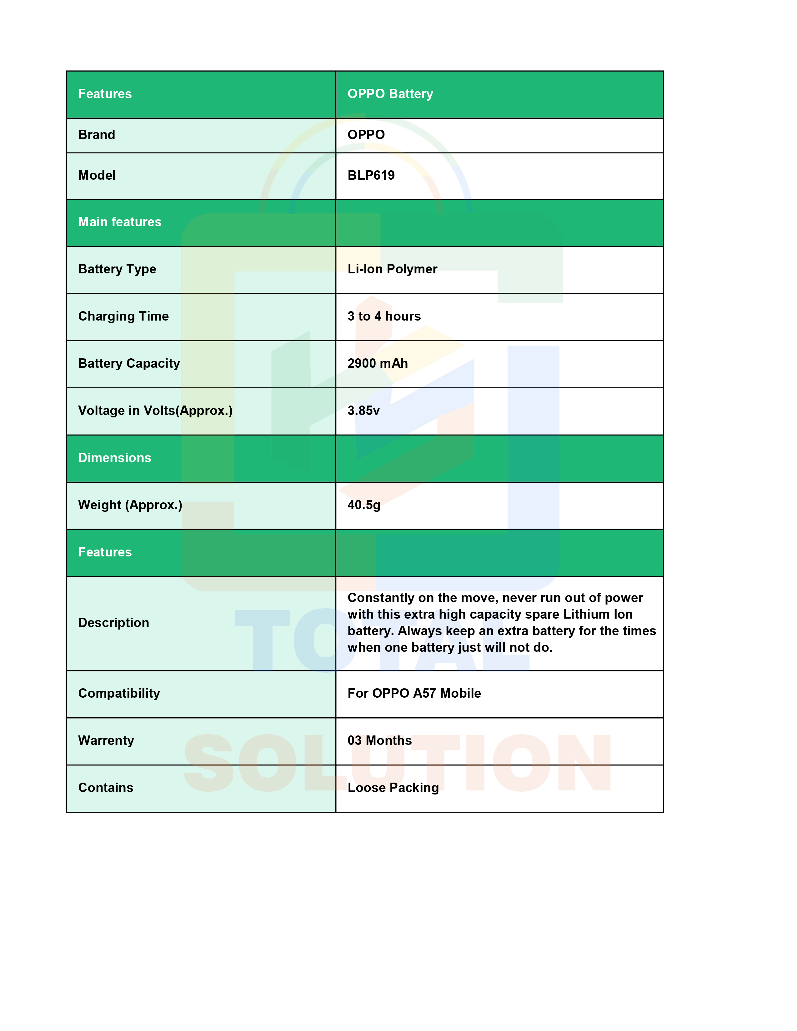 NEW Original Oppo A57 CPH1701 Battery BLP619 - 2900mAh