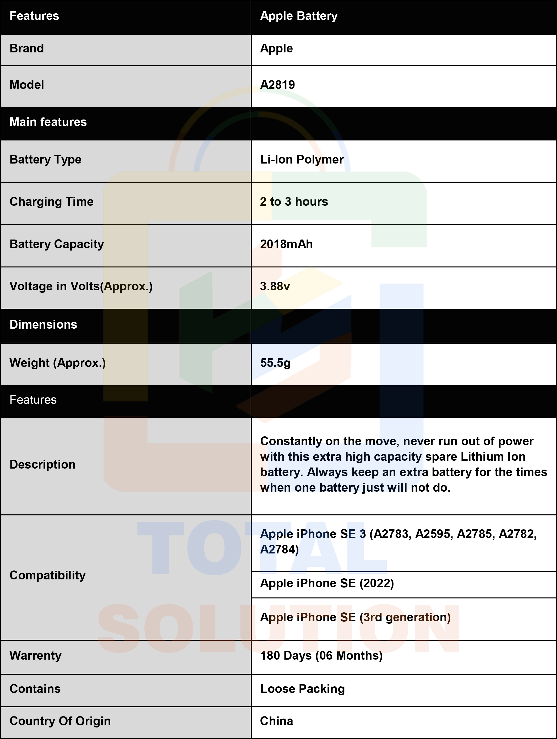 Original Apple A2819 Battery For iPhone SE 3rd Gen / iPhone SE (2022) / iPhone SE 3 - 2018mAh