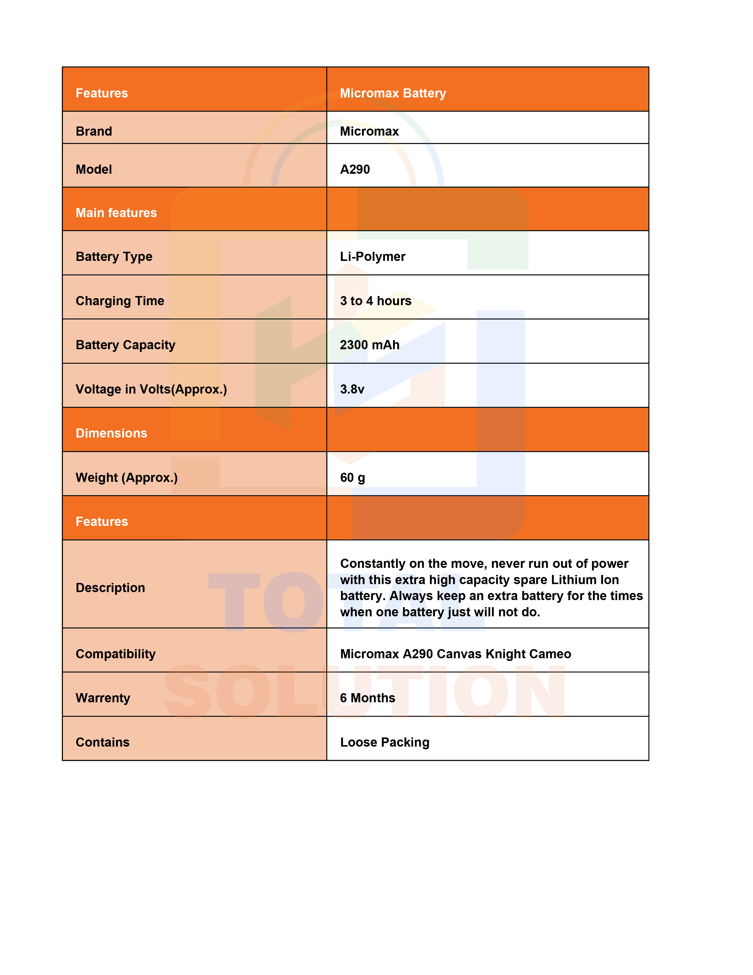 Original Battery For Micromax A290 Canvas Knight Cameo with 2300mAh