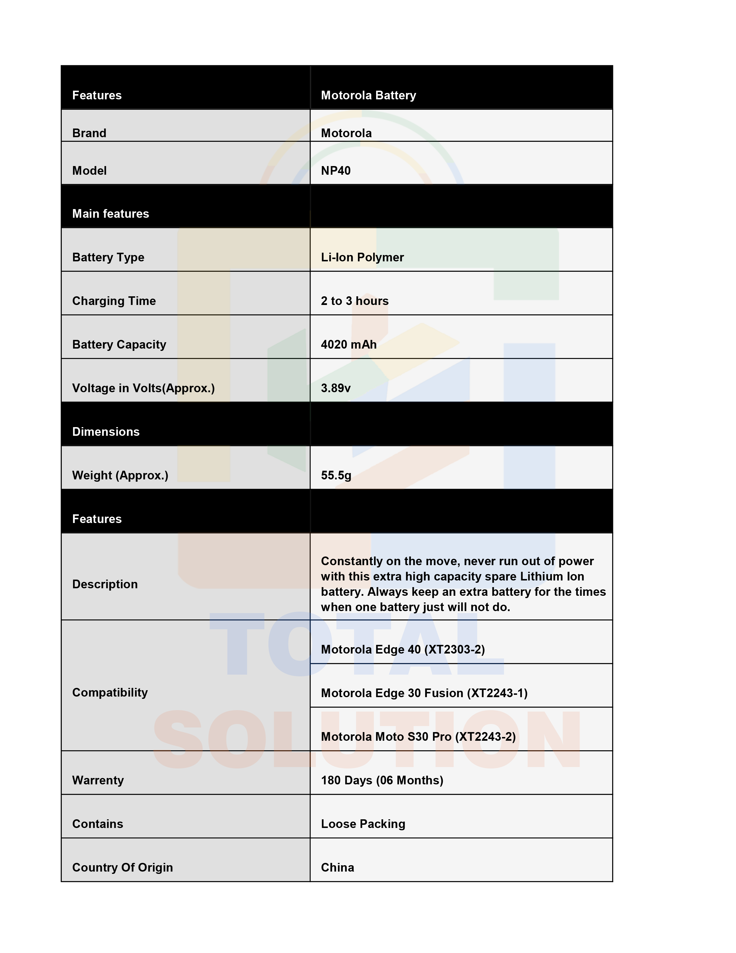 Original Battery For Motorola Edge 30 Neo (NP40) 4020mAh