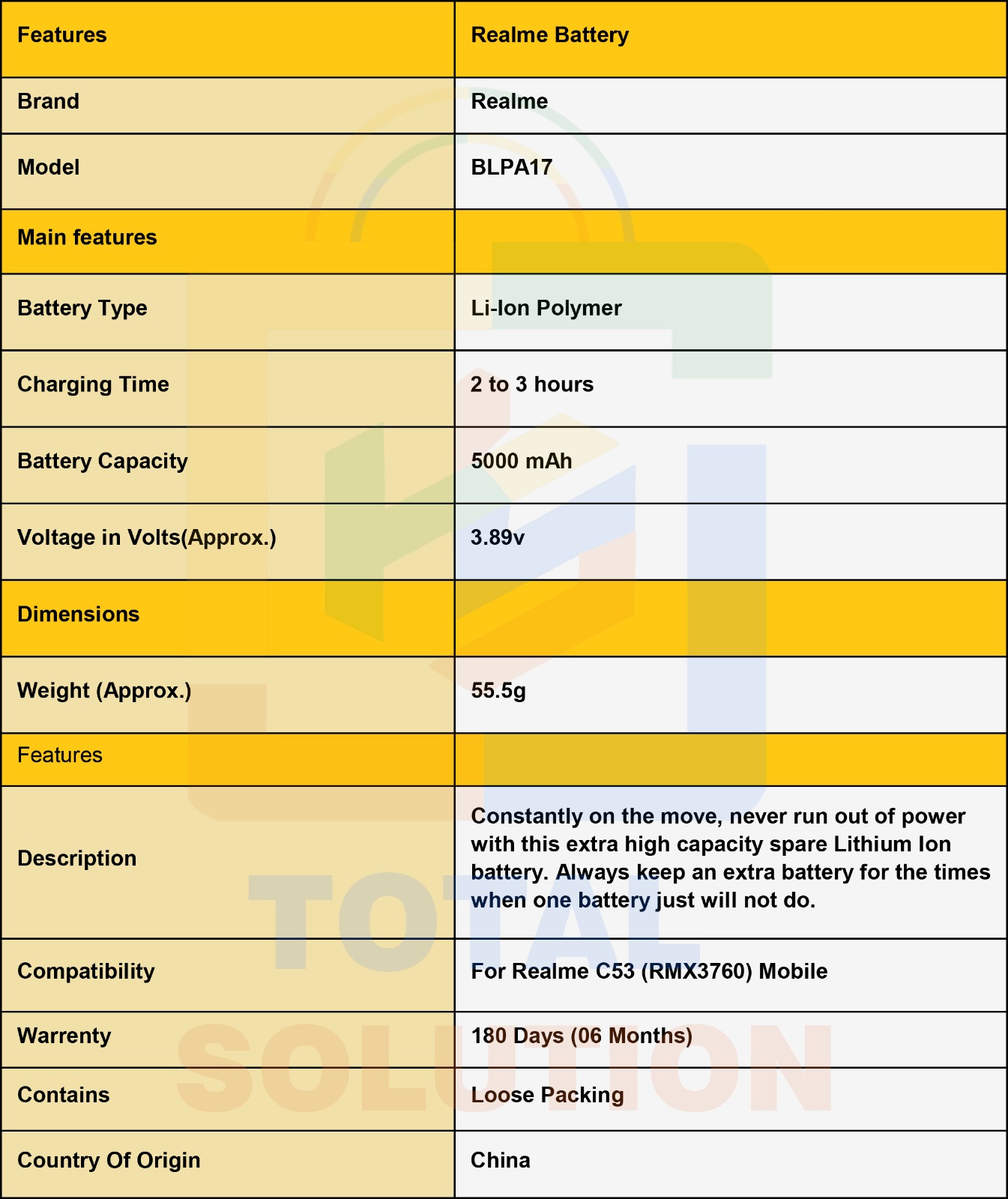 Original BRAND NEW Realme BLPA17 Realme Battery For Realme C53 (Realme RMX3760) 5000mAh