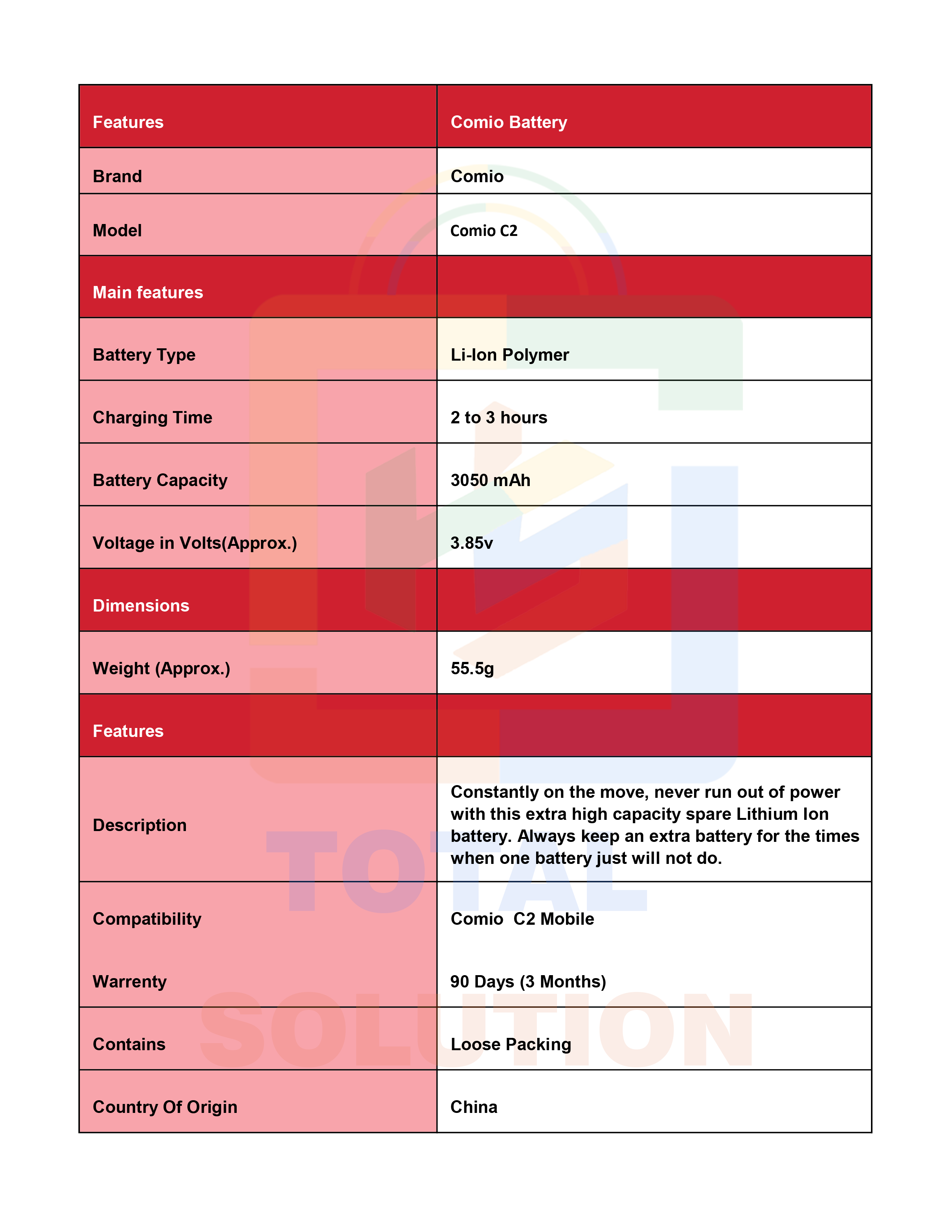 Original Comio C2 Battery with 4000 mAh