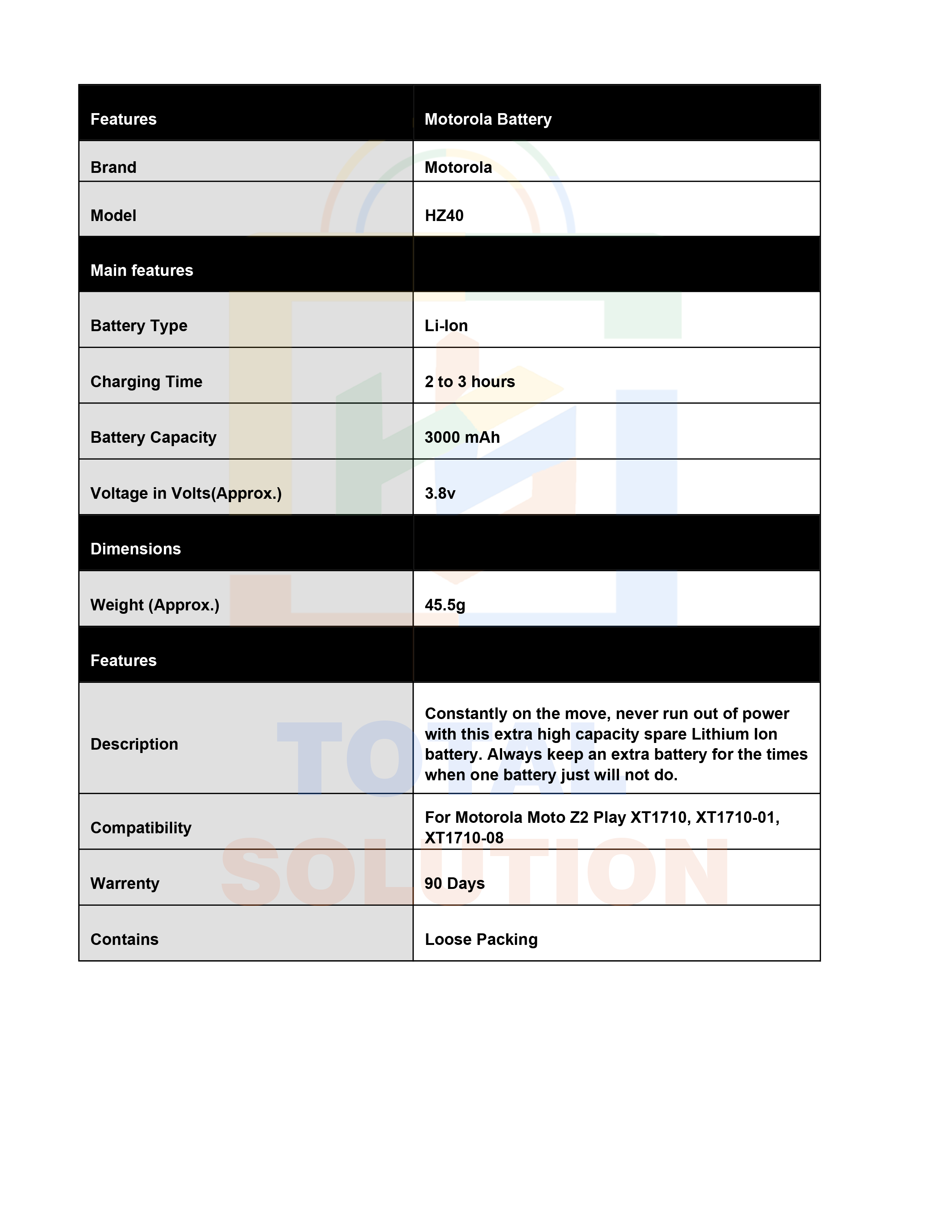 Original Motorola Moto Z2 Play Battery HZ40 - 3000mAh