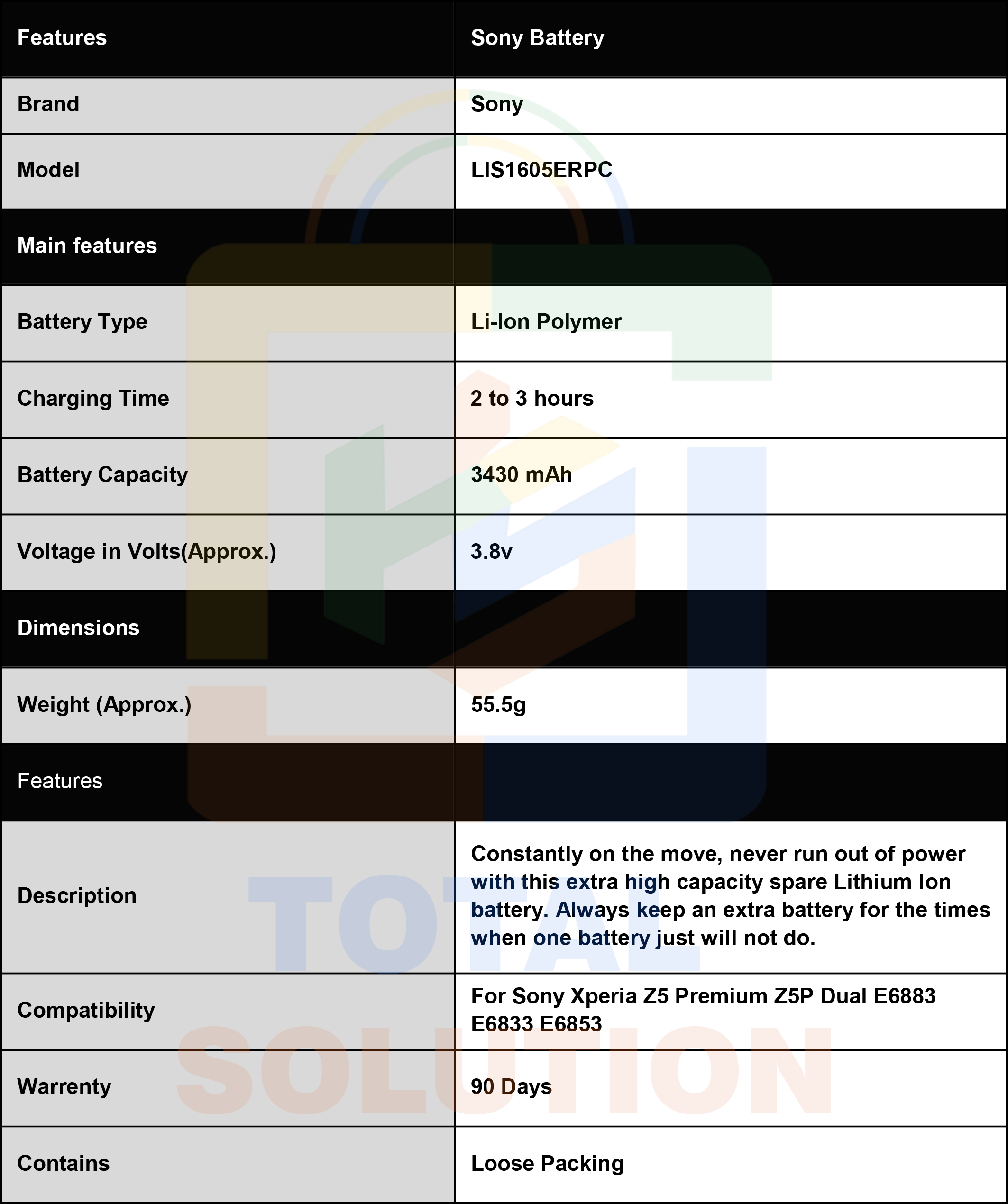 Original QUALITY BATTERY Sony Xperia LIS1605ERPC For Sony Xperia Z5 Premium Dual E6883 E6853 Mobile - 3430mAh,
