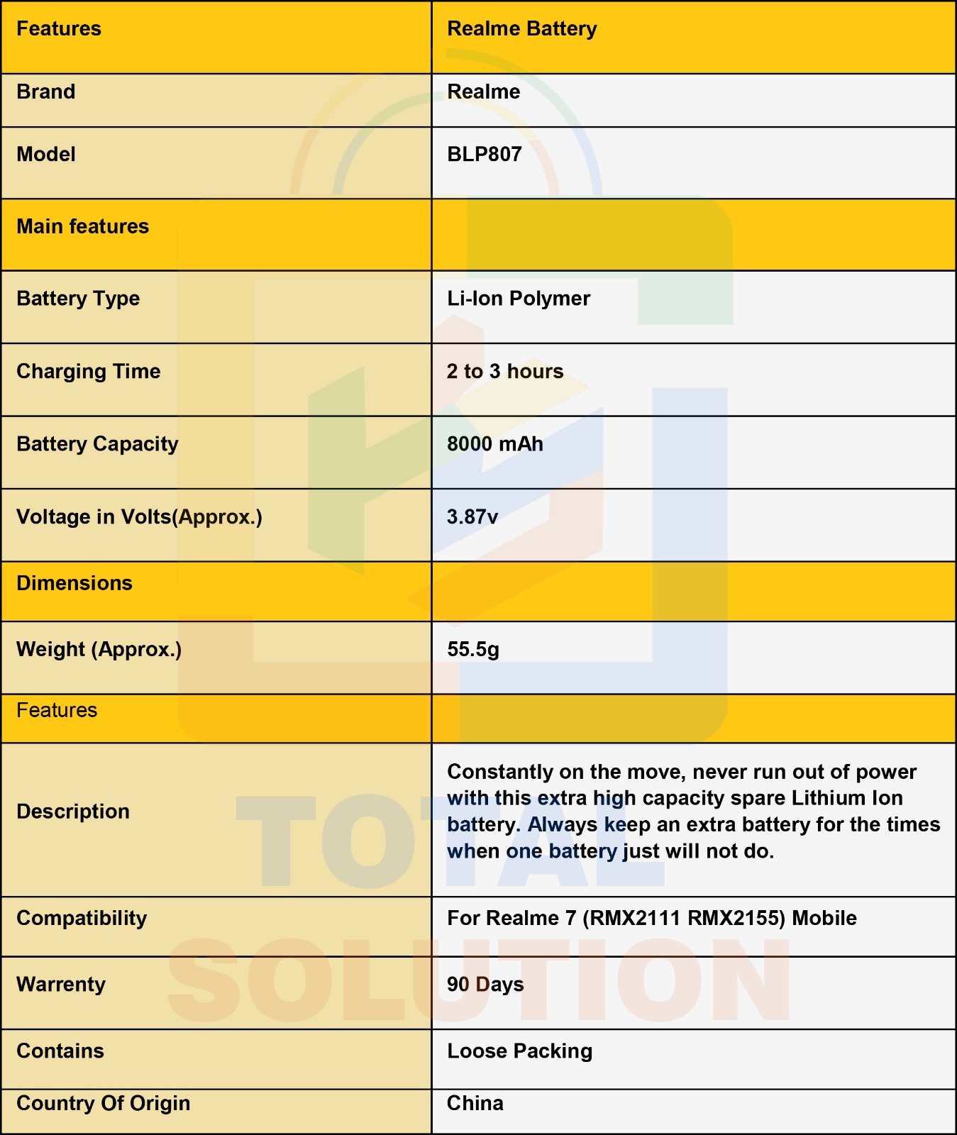 Original Realme 7 ( RMX2111 RMX2155 ) Battery BLP807 - 5000mAh