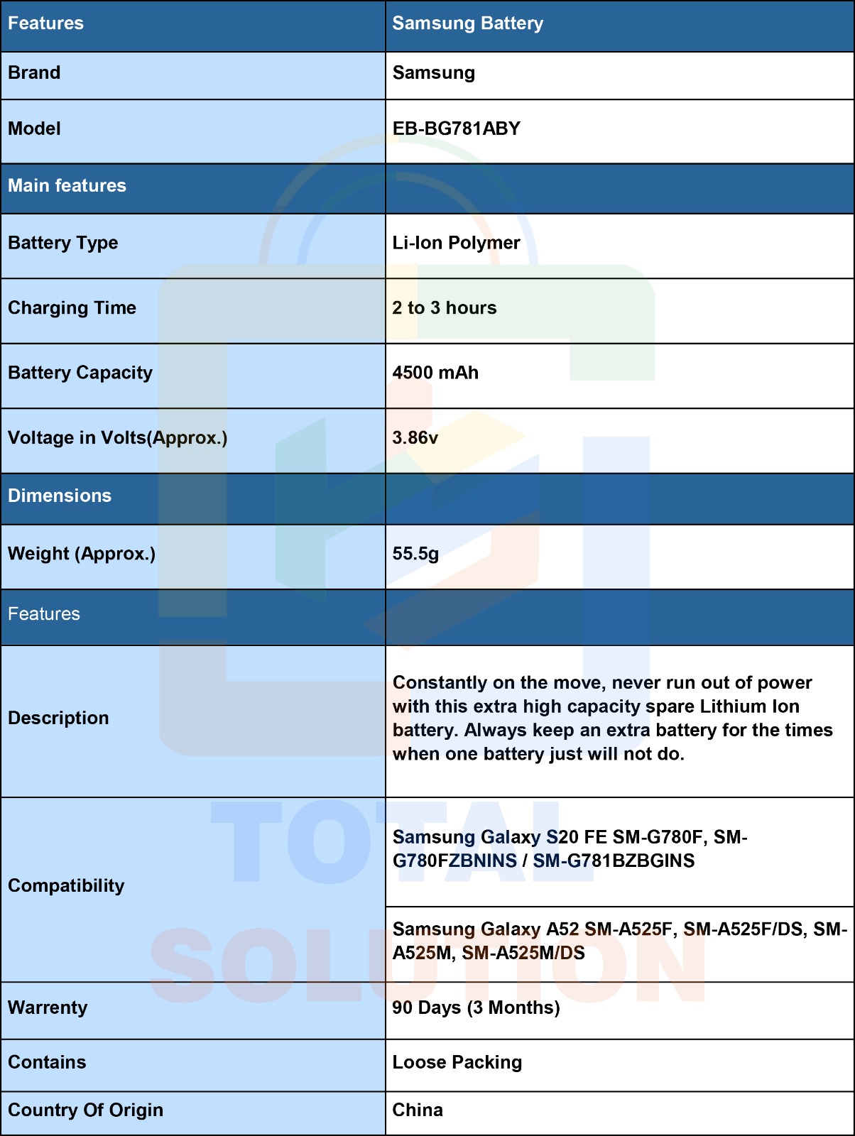 Original Samsung Galaxy A52 / A52s 5G / S20 FE 5G Battery EB-BG781ABY - 4500mAh