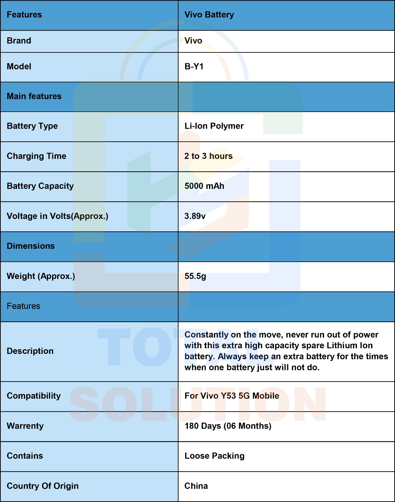 Original Vivo B-Y1 Battery For Vivo Y53 5G Mobile BY1 - 5000mAh