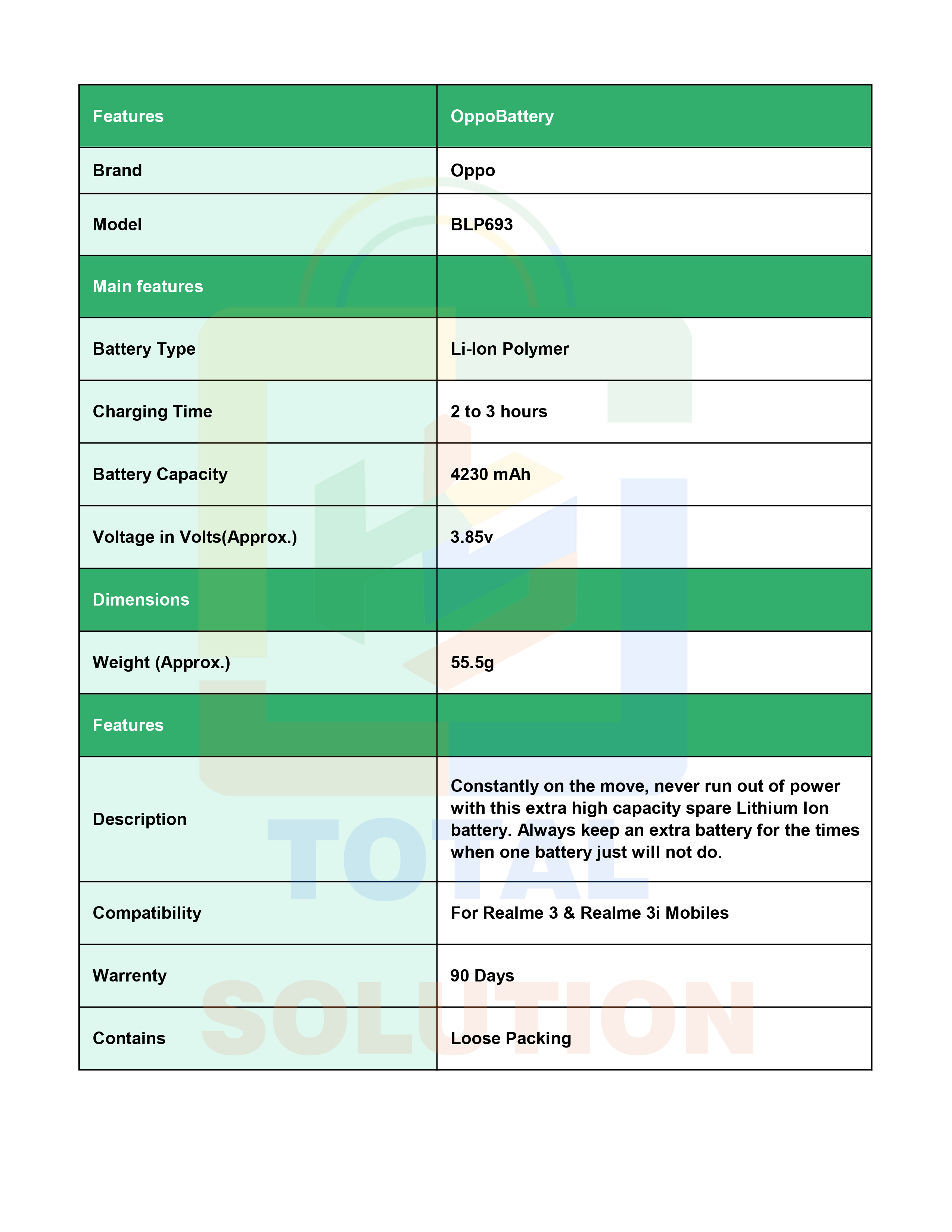100% Original Brand New Realme 3, Realme 3i Battery BLP693 4230mAh 6 months warranty