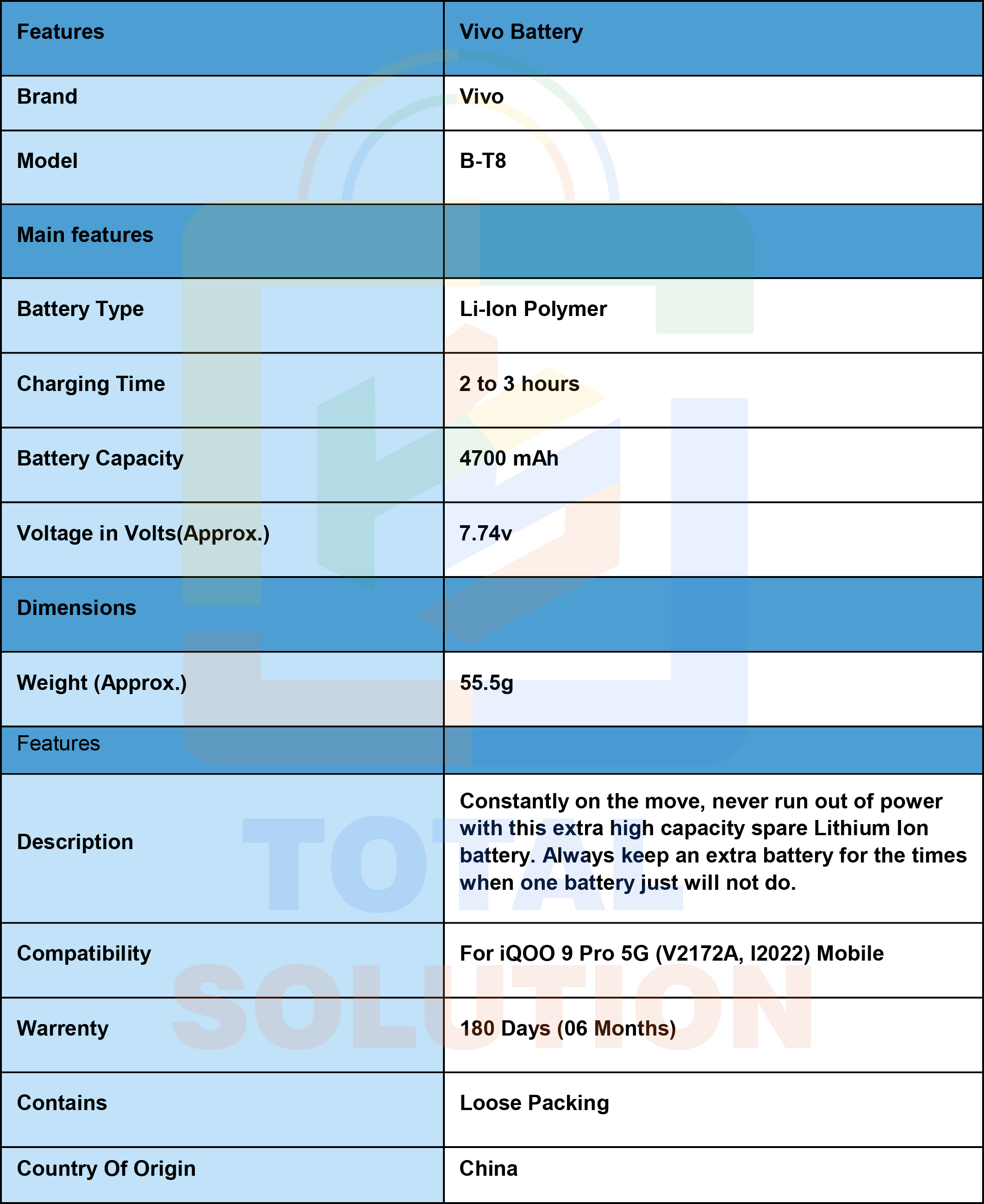 100% Original iQOO 9 Pro 5G Battery B-T8 - 4700mAh
