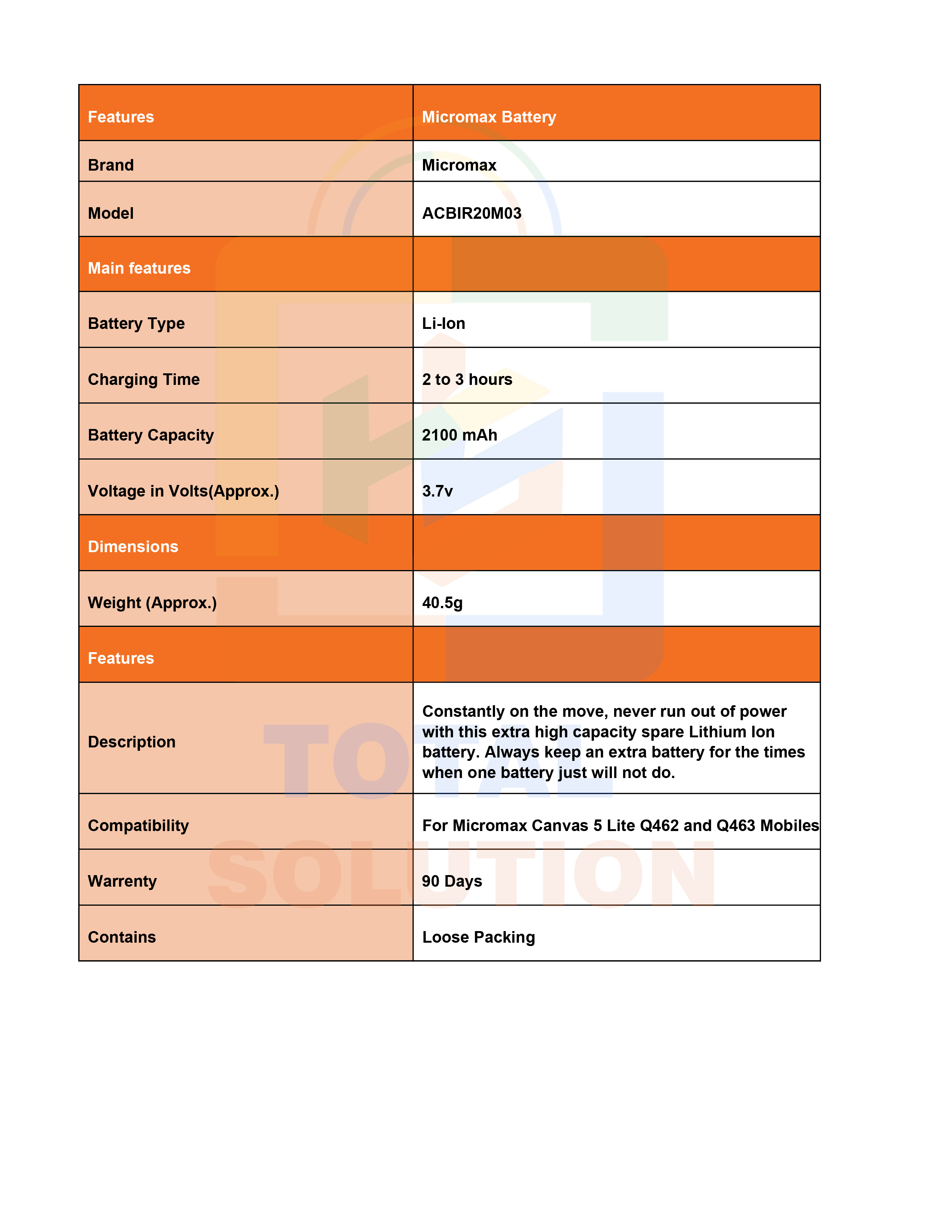 Micromax Q462/ Q463 Canvas 5 Lite Battery with 2100 mAh