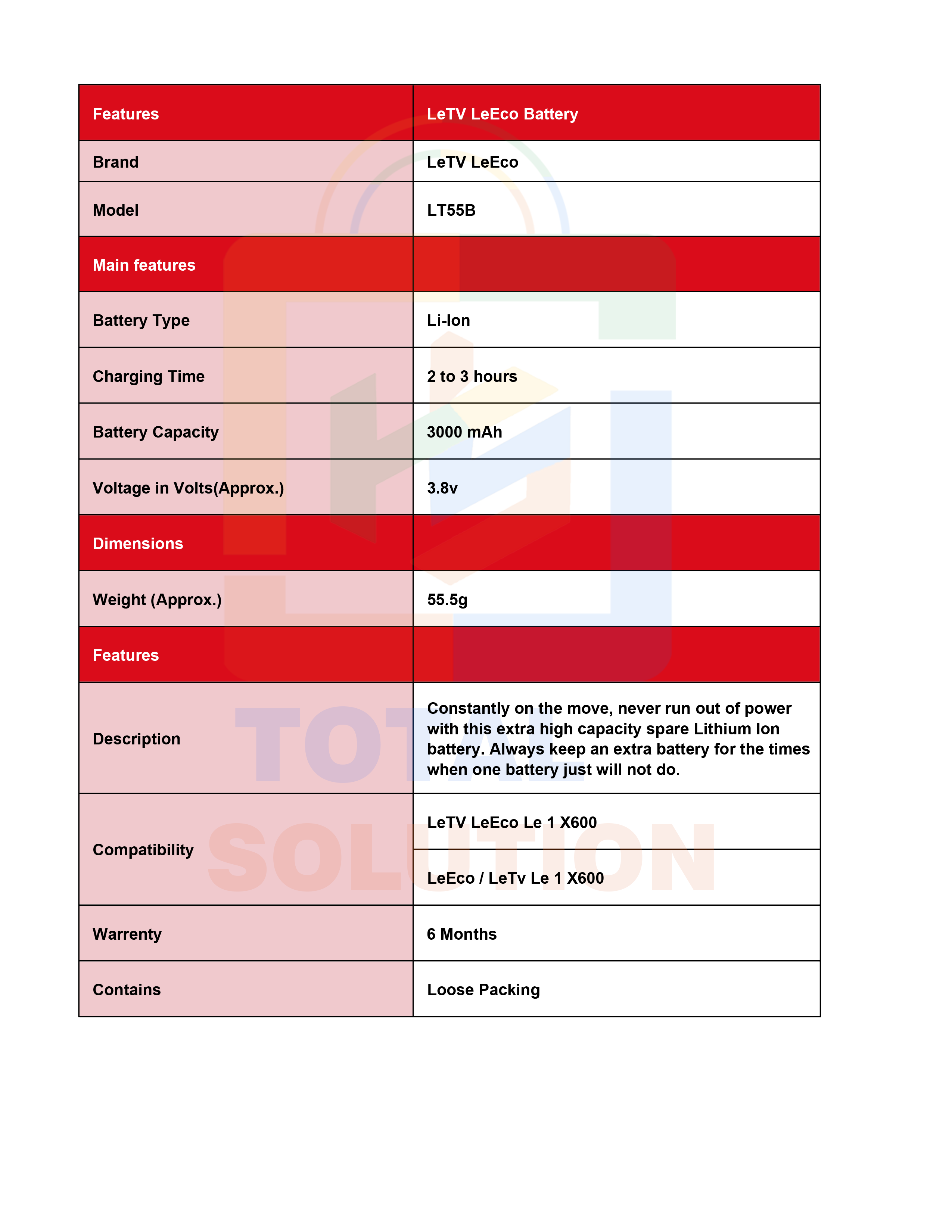 NEW Original LT55B 3000mAh Battery For LeTV LeEco Le 1 X600 Smartphone