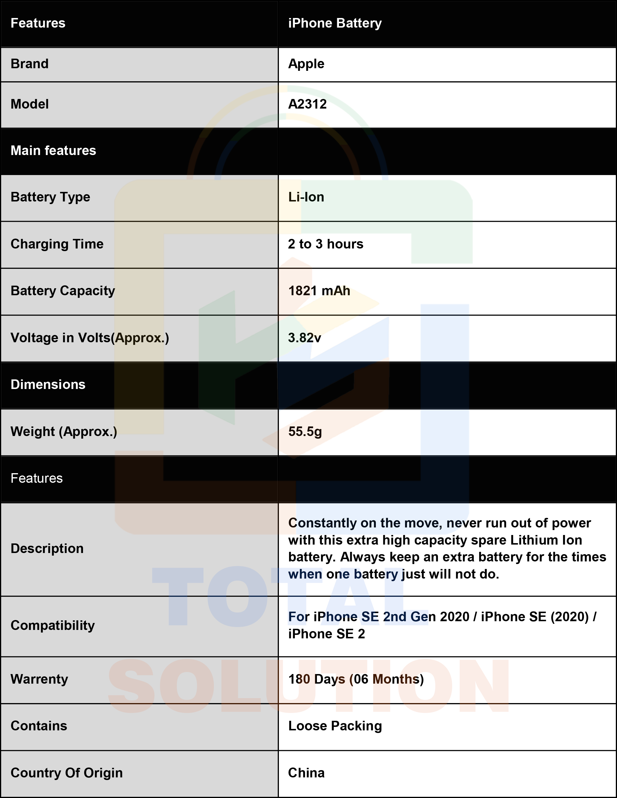 Original Apple A2312 Battery For iPhone SE (2020) / iPhone SE 2 – 1821mAh