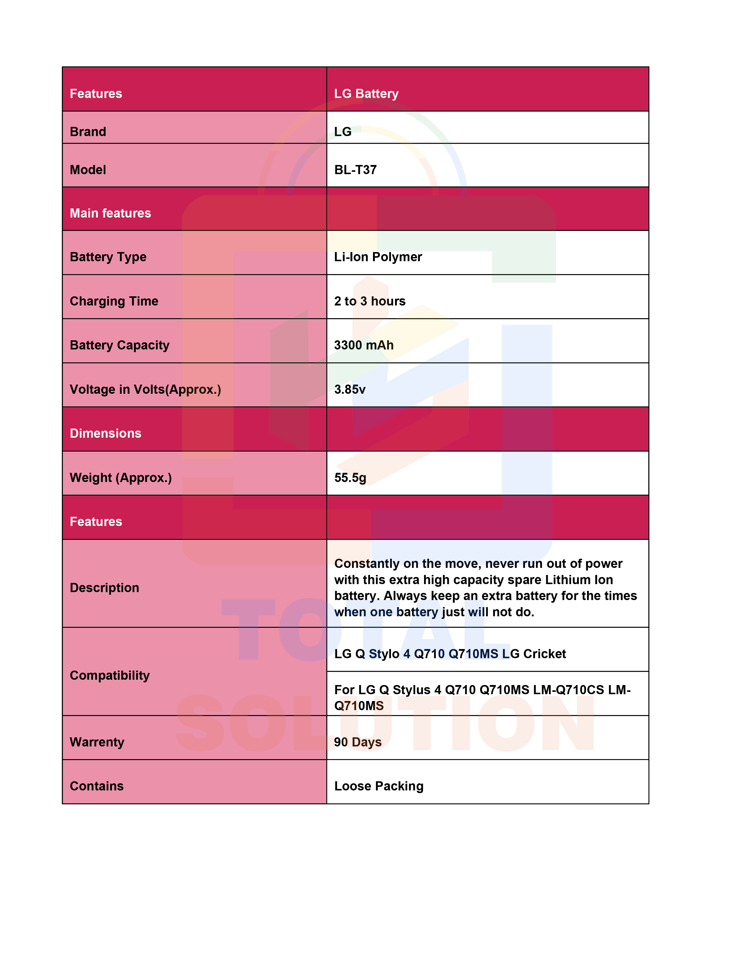 Original LG BL-T37 Battery For LG V40 ThinQ / LG Stylo 4 / LG Q Stylus+ BLT37 - 3300mAh