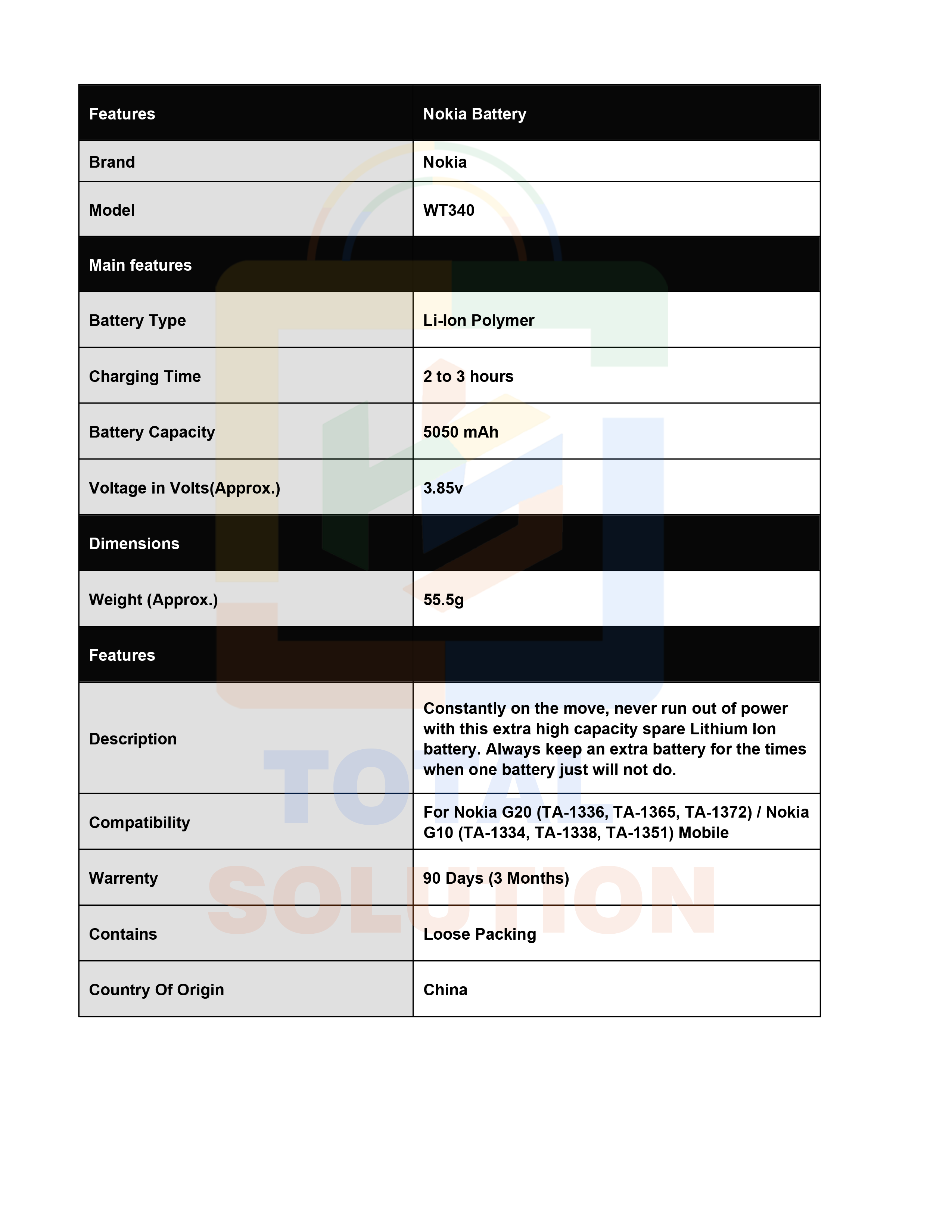 Original Nokia G10 / Nokia G20 Battery WT340 - 5050mAh