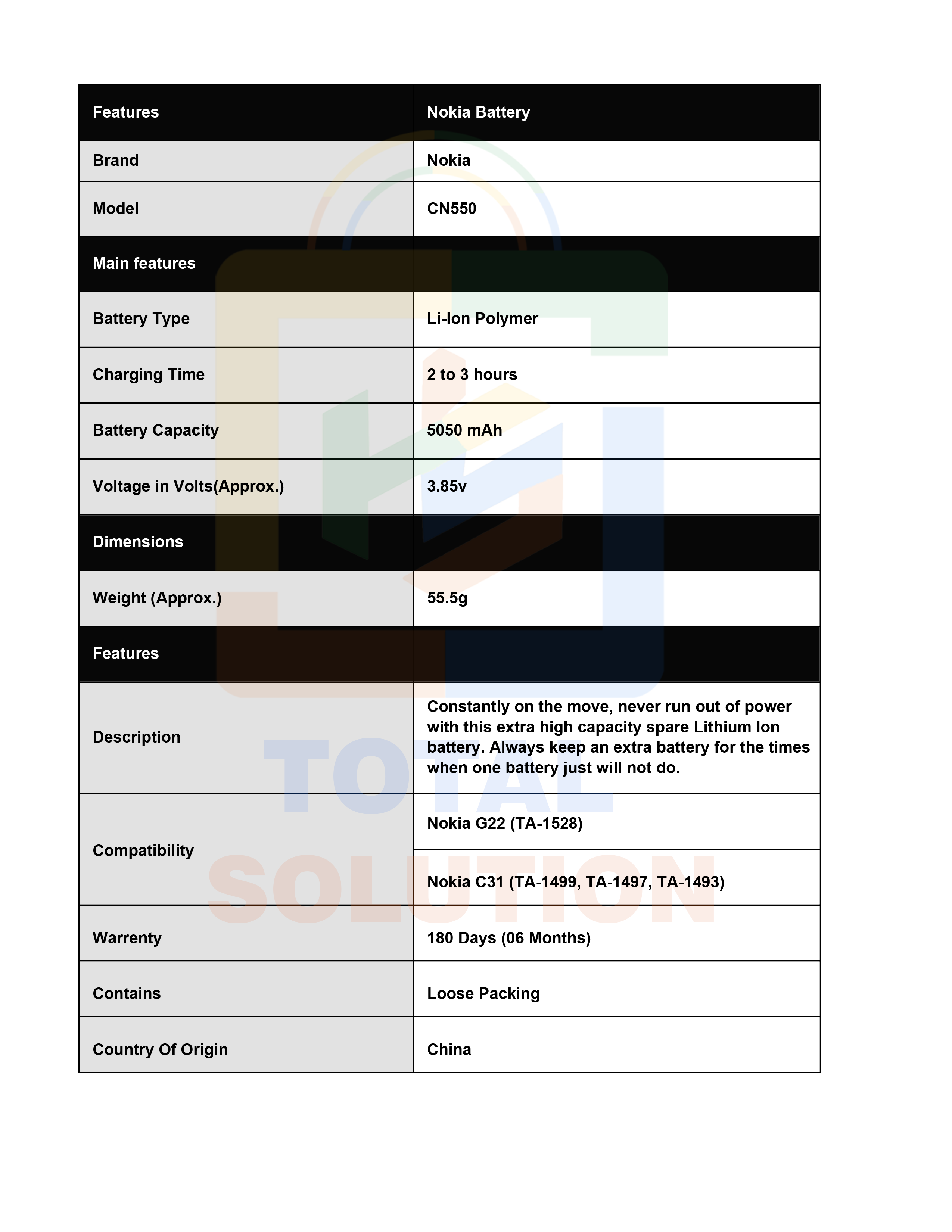 Original Nokia G22 (TA-1528) Battery CN550 - 5050mAh