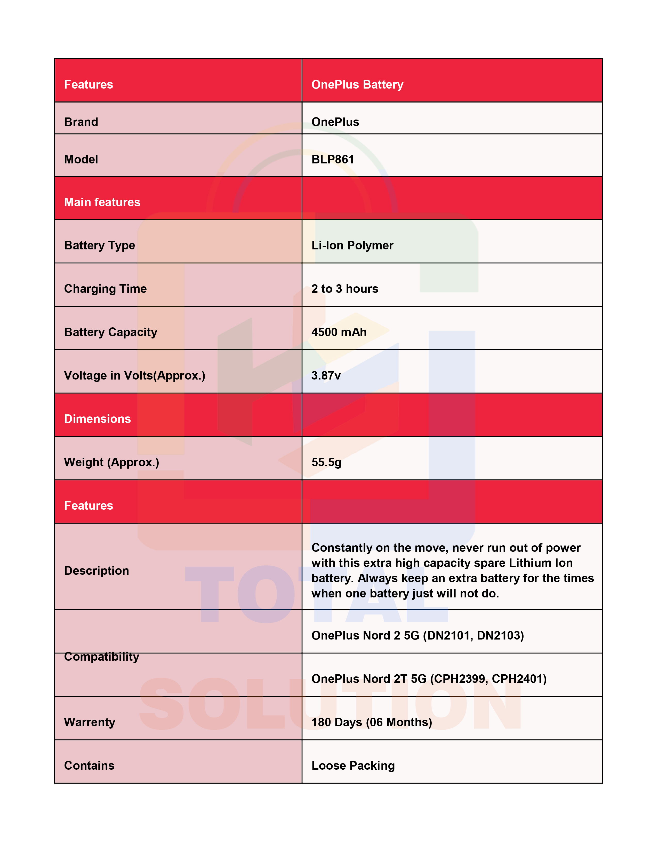 Original OnePlus BLP903 Battery For OnePlus 9 Pro 5G / Nord CE 2 5G Mobile - 4500mAh