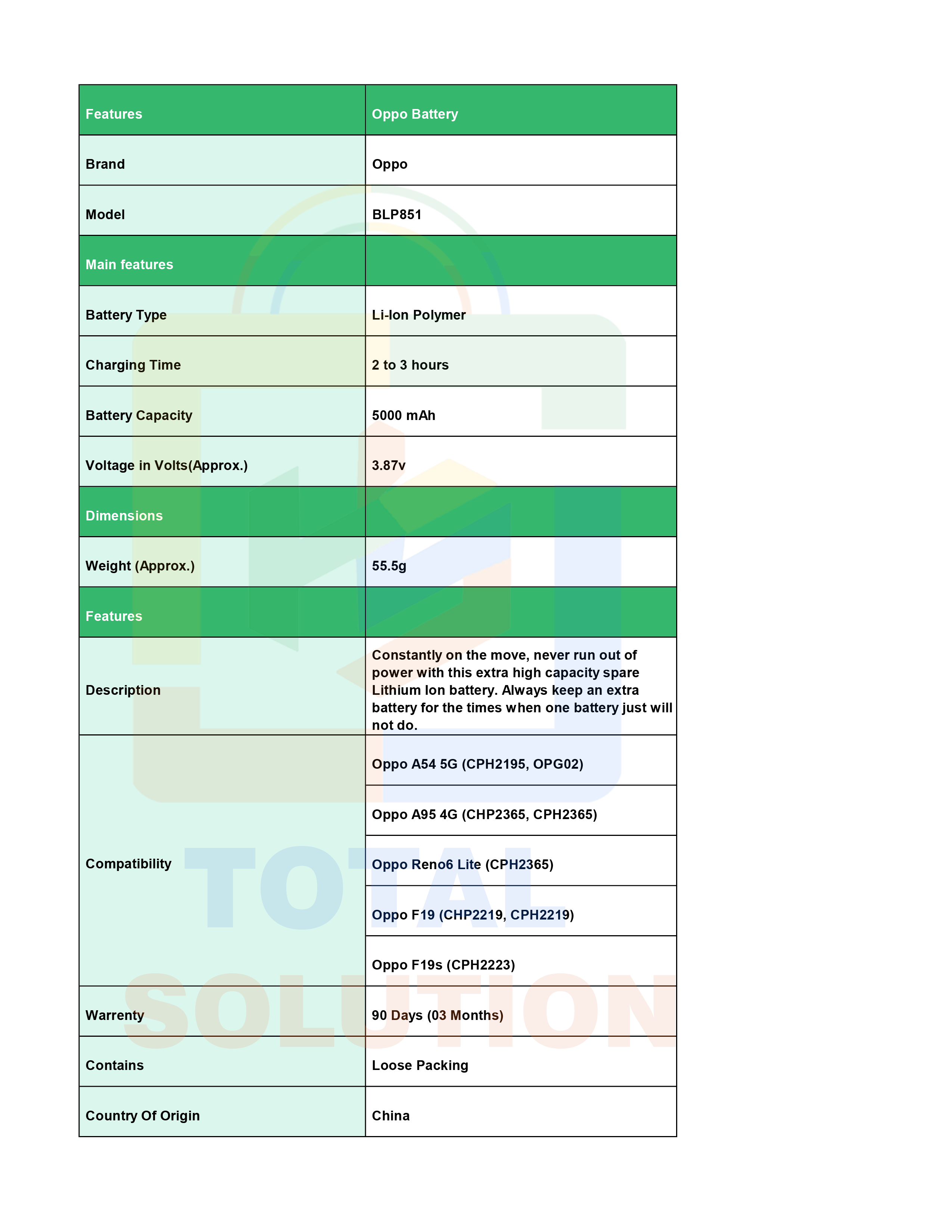 Original Oppo F19 / F19s / A95 4G / A54 5G / Reno 6 Lite Battery BLP851 - 5000mAh