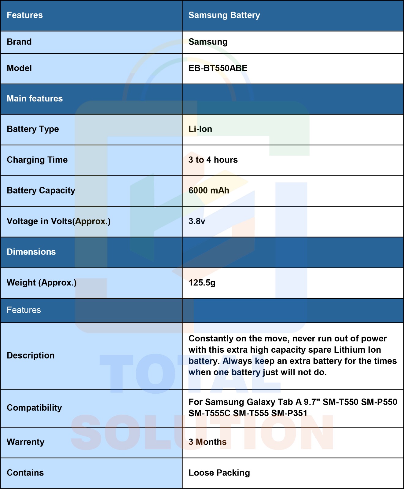 Original Samsung Galaxy Tab A 9.7 SM-T550 Battery EB-BT550ABE - 6000mAh